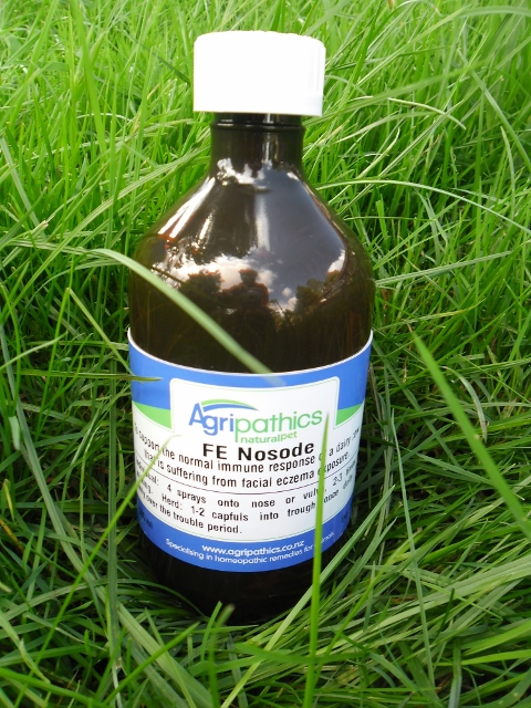 Facial Eczema nosode, is a homeopathic remedy made out of actual facial eczema tissue and used on the principle of homeopathic prophylaxsis. FE nosode will help your farm animals immune system in high risk facial eczema times.