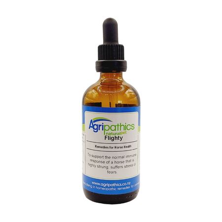 Flighty is a homeopathic blend designed specifically to support the immune response of a highly strung and flighty horse that suffers pre-performance stress or has fears such as thunder, fireworks, farriers and vets.