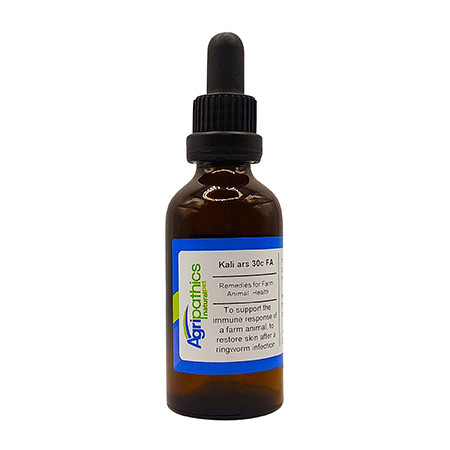Kali Ars 30c is supplied in liquid form, which we find to be the easiest and most effective method of administration for all farm animals. Homoeopathic remedies can be given directly into the animal's mouth, added to feed, or mixed into drinking water. All methods are equally effective.