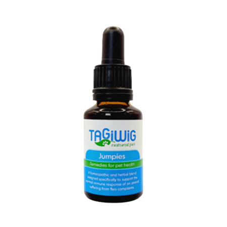Natural Flea product. Jumpies is a homeopathic and herbal blend designed specifically to support the normal immune response of an animal suffering from flea and tick complaints. Jumpies is a 100% natural flea remedy that works well on its own or in combination with other flea treatments. People find that by using Jumpies in conjunction with commercial products, that they help to support this process, assisting in keeping the animal flea free longer and can even increase lengths between applications.