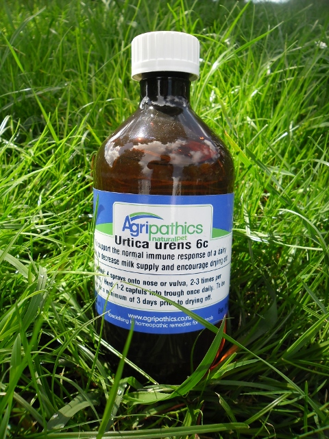 To assist the natural immune system of a dairy cow to decrease milk supply for when you are wanting to dry cows off. Urtica urens is a homeopathic remedy that has an affinity with the mammary glands and is very useful in drying up the flow of milk in nursing cows.